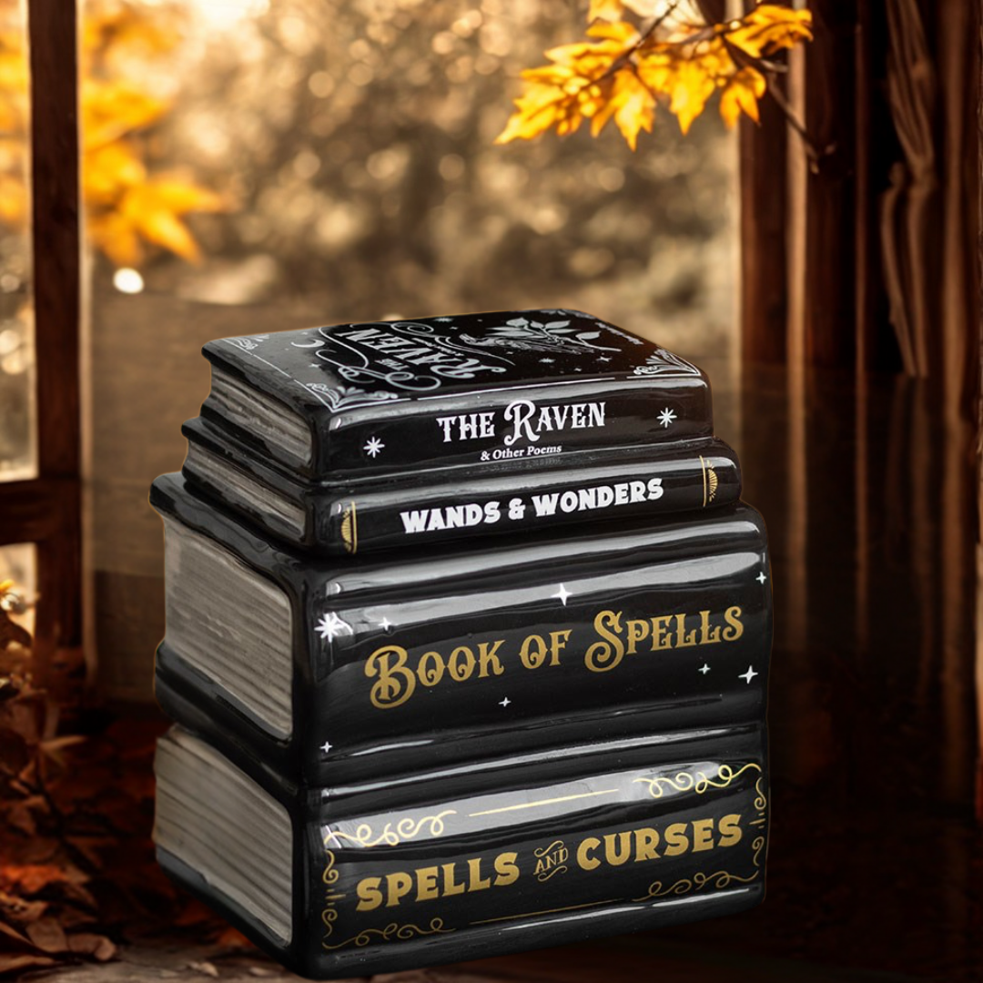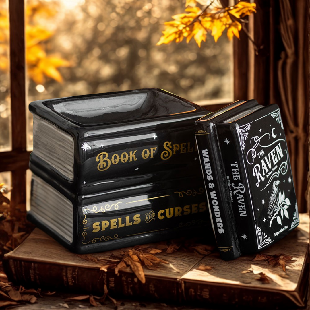 Cette piĂšce, en forme de pile de grimoires noirs, est disponible en un seul exemplaire. IdĂ©al pour faire fondre vos fondants parfumĂ©s tout en ajoutant une touche ensorcelante Ă votre dĂ©co ! Parfumez votre intĂ©rieur de fragrances magiquesÂ