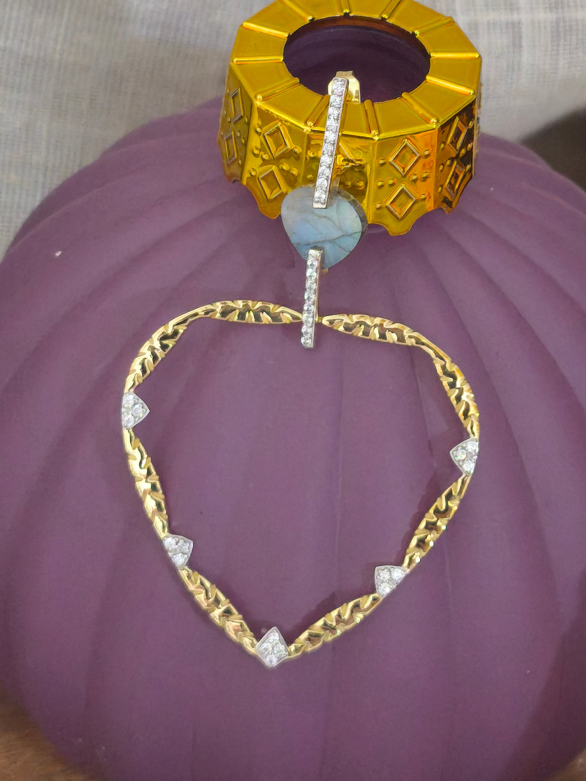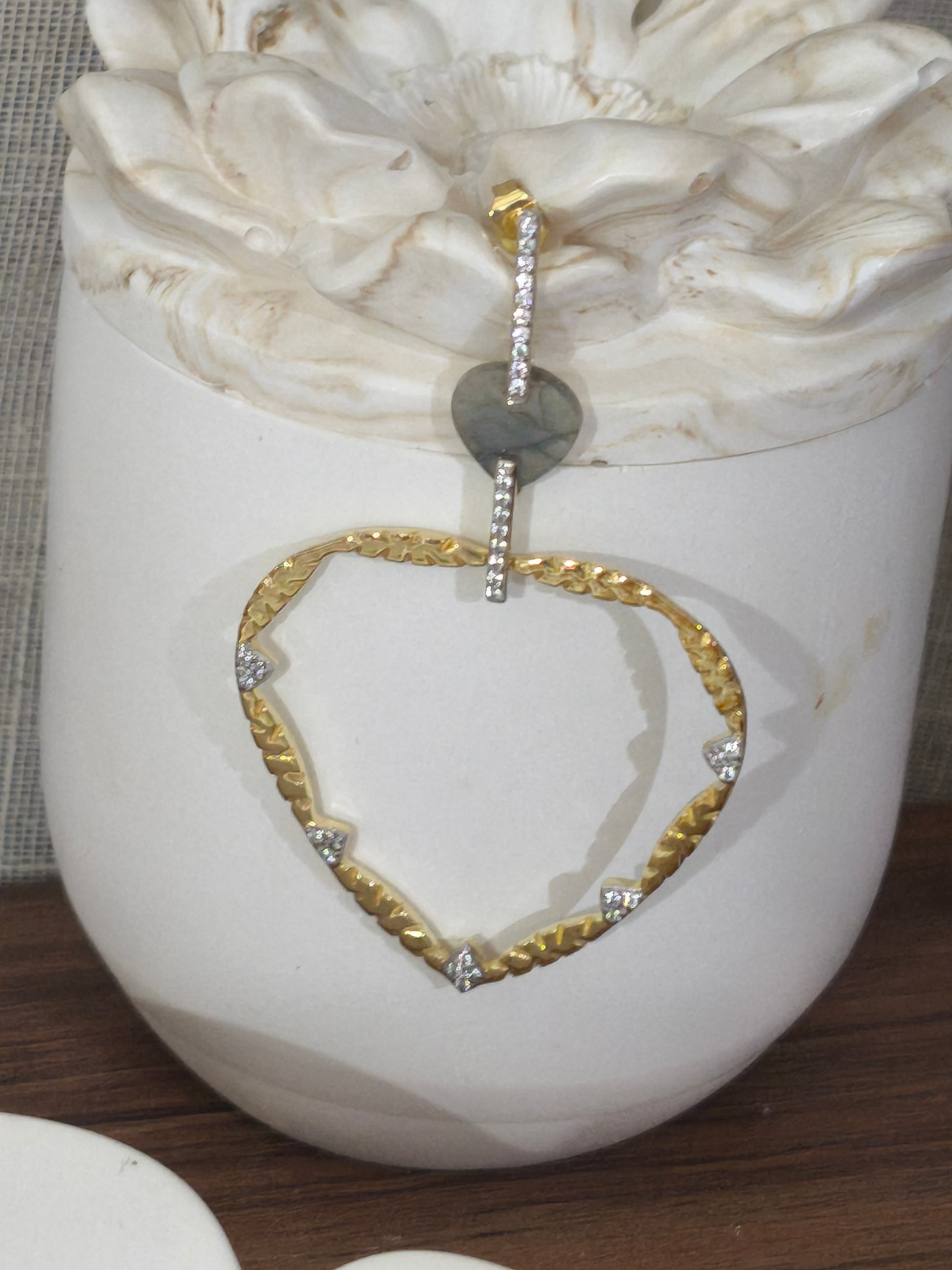 Les boucles d’oreilles Lima en labradorite, pierre nervurée aux reflets bleutés, sont produites en quantité limitée pour une meilleure qualité.
