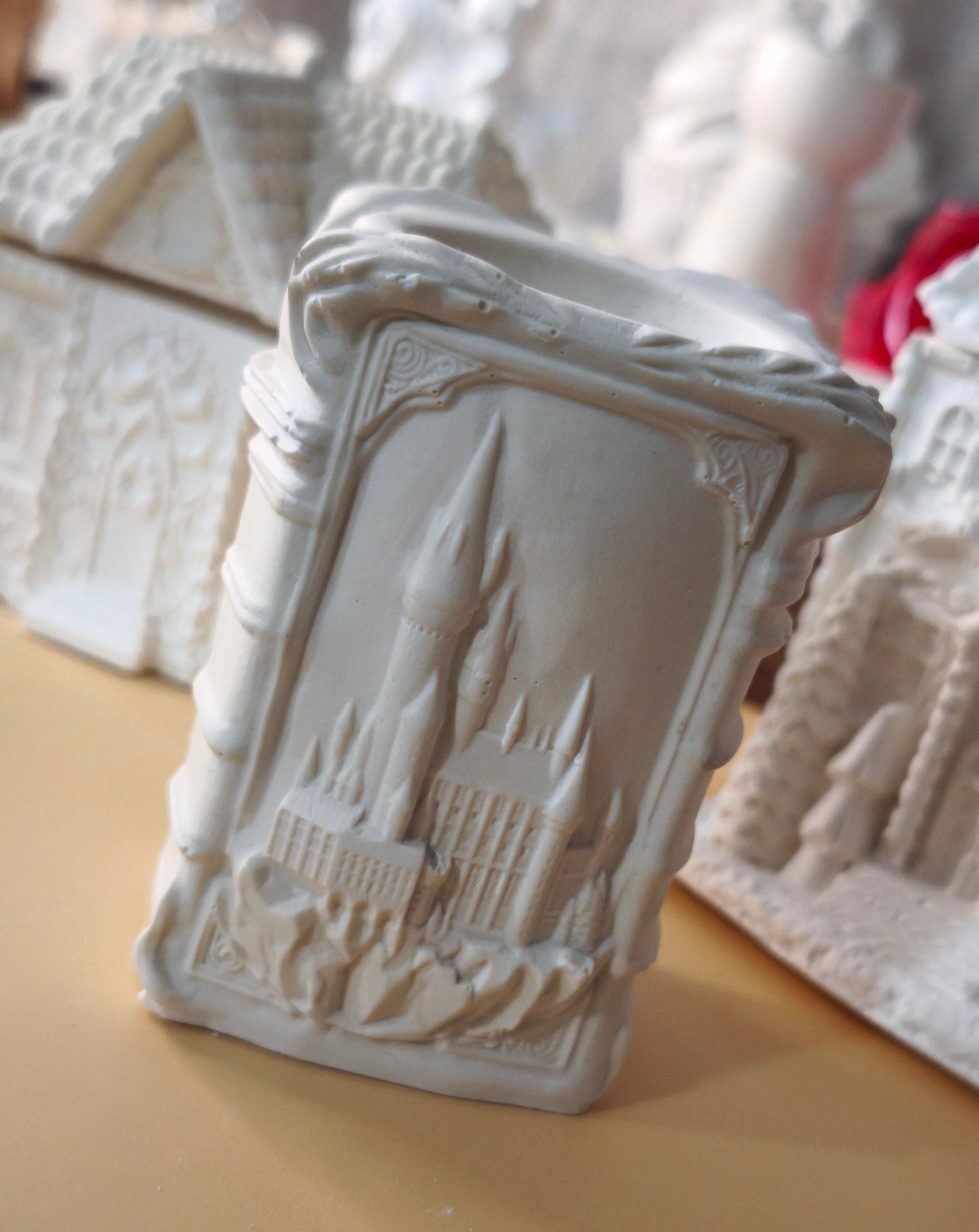 Ce contenant évoque un château magique. Idéal pour les fans de magie et les amoureux de l'univers fantastique, il apportera une touche mystique à votre intérieur. Fabriqué avec soin, ce contenant est le parfait cadeau pour les collectionneurs et les passionnés d'aventure.