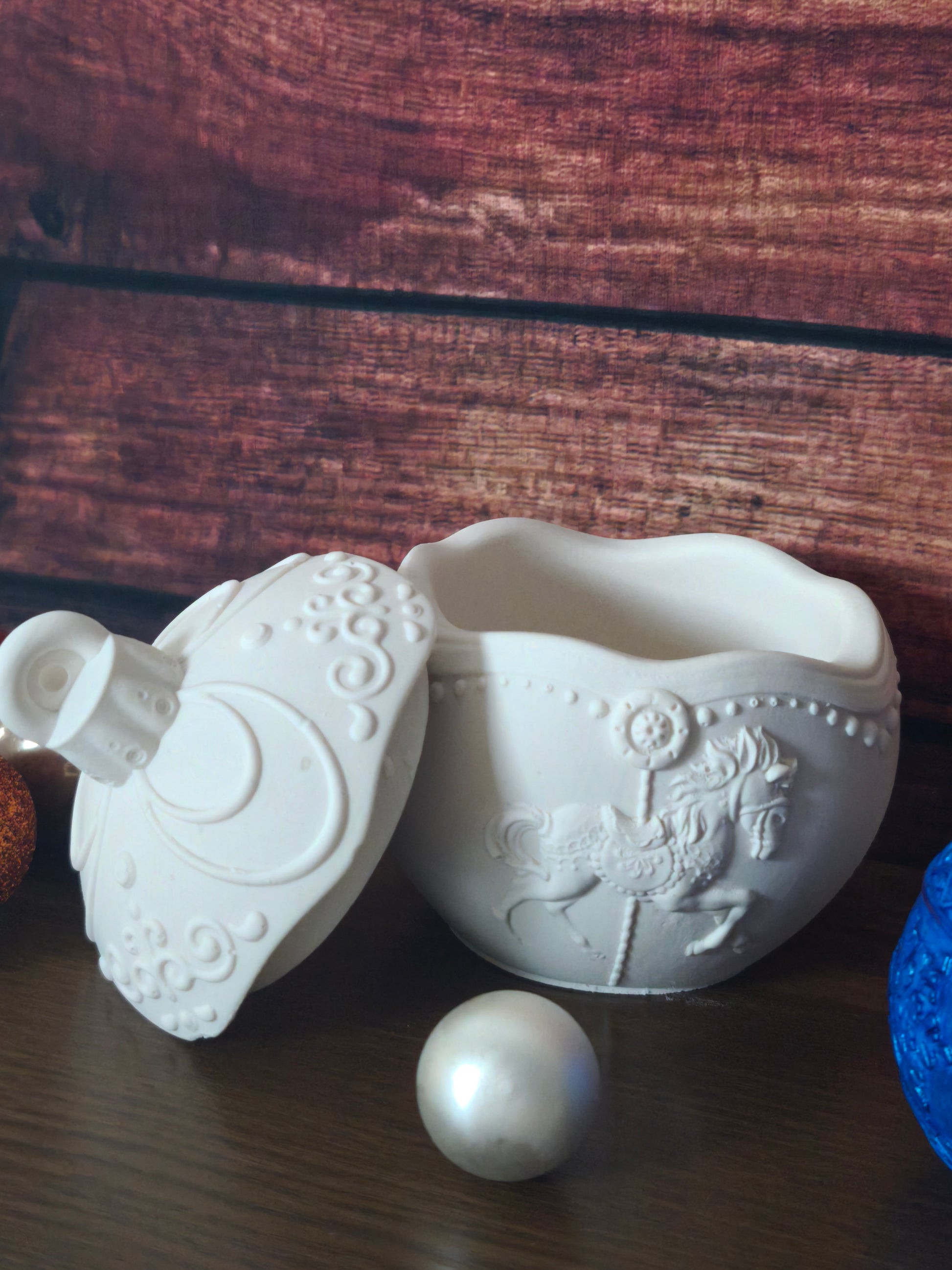 Découvrez la magie du « Carrousel des rêves », une boite boule de Noël enchanteur qui capture l'essence de l'enfance et de la nostalgie festive. Orné d'un magnifique cheval de carrousel, cette pièce unique transforme votre sapin en galerie d'art miniature. Parfait pour les collectionneurs de décorations vintage ou pour offrir à quelqu'un qui chérit les détails délicats et les souvenirs précieux. Chaque rotation du cheval rappelle les joies simples des fêtes de fin d'année. Une décoration qui fait tourner les cœurs autant que le carrousel lui-même !