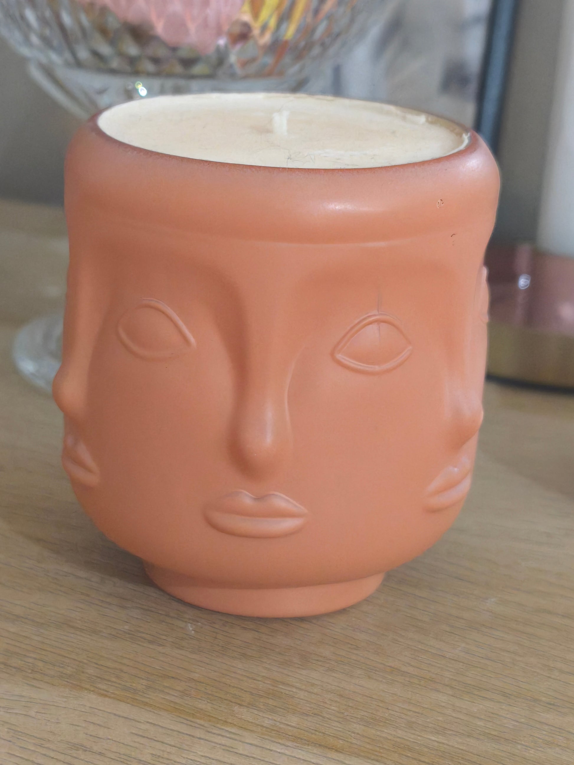 Bougie dont la couche supérieure est blanche et la couleur orange apparaît progressivement, à l'intérieur, lorsque la bougie fond.