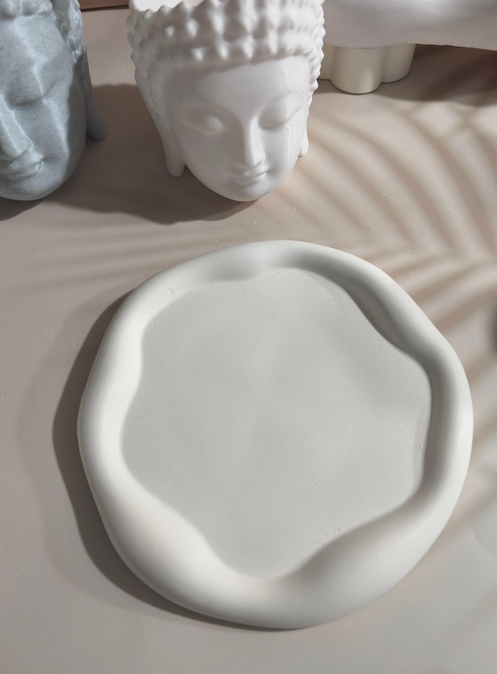 Découvrez le plateau vague rond fabriqué de manière artisanale. Il est idéal comme support pour vos bougies, comme plateau décoratif ou comme vide-poches.